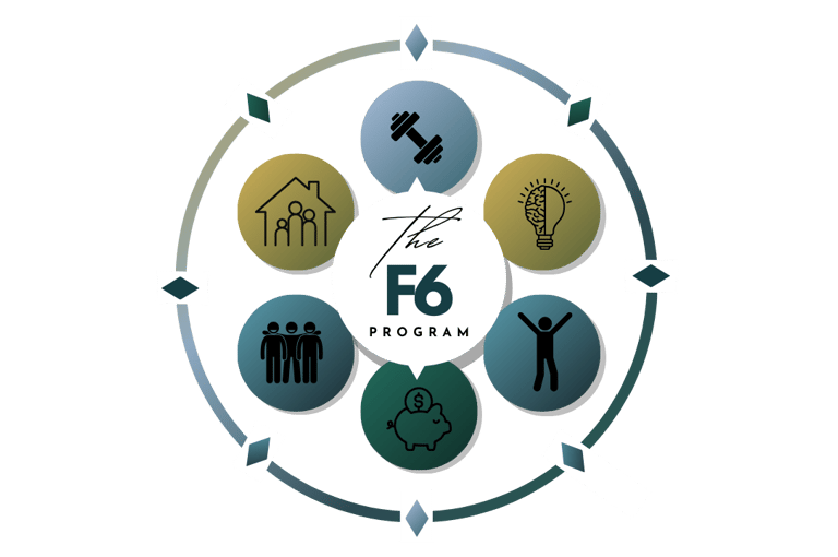Six focused themes — Finance, Fitness, Family, Faith & Mindset, Friends & Community, and Freedom — each designed to help you make real progress month by month.Private Cohort Community ($500 Value)